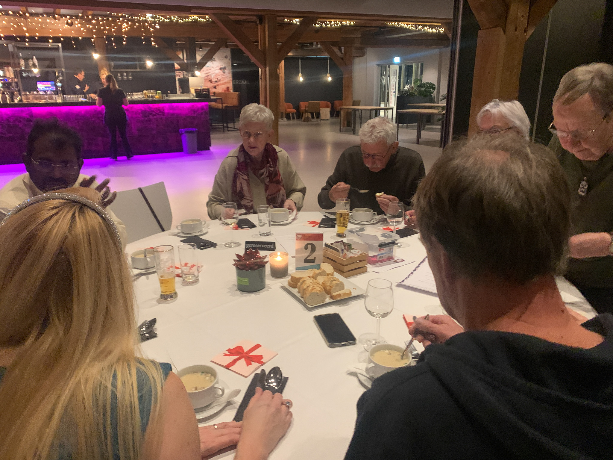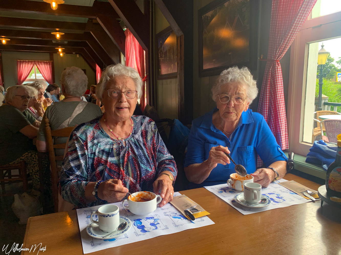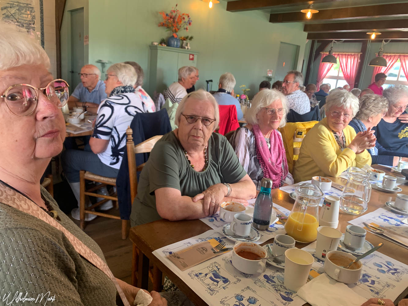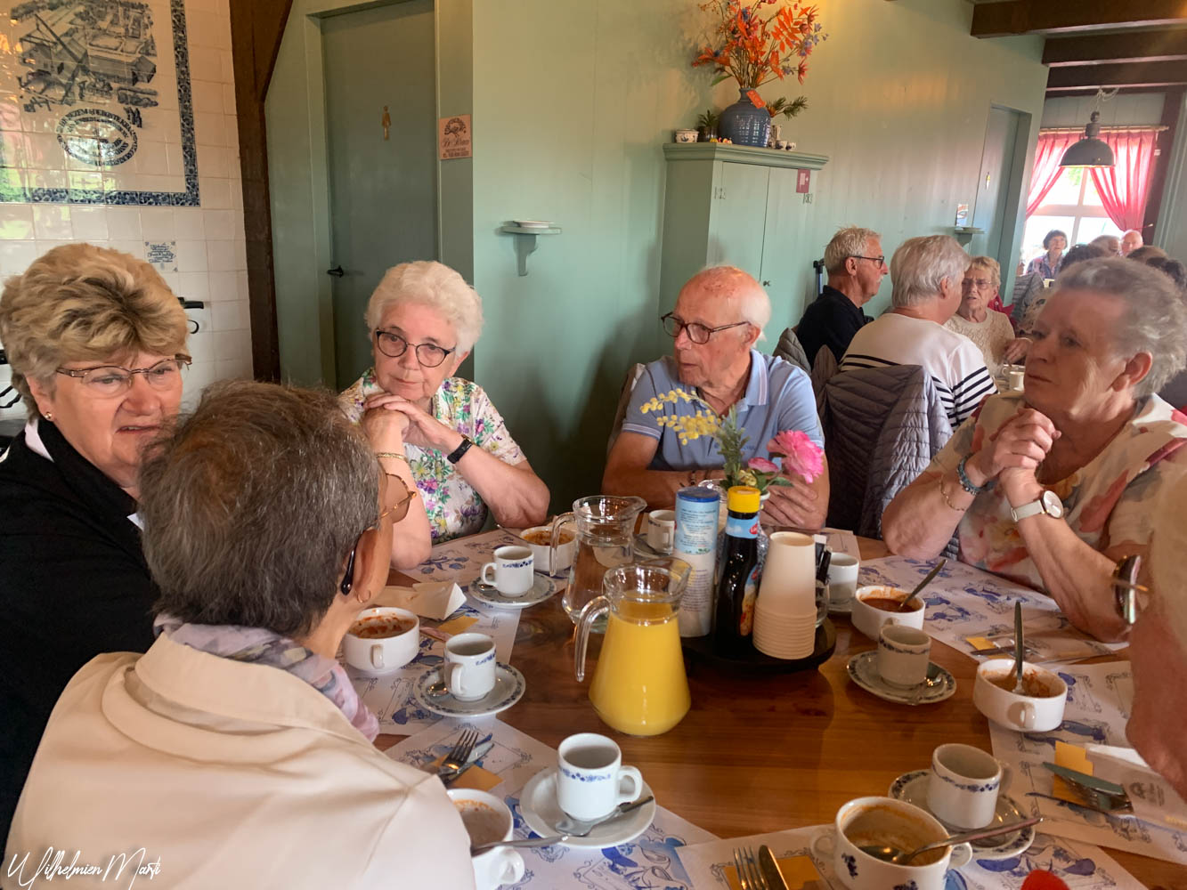Om 13.15 uur stond in het restaurant de lunch voor ons klaar; bestaande uit, tomatensoep, 2 broodjes met vlees en kaas, glaasje jus orange en koffie of thee. Daarna was er nog tijd om nog even rustig door het museum te wandelen, iets leuks in de museumwinkel te kopen of lekker met elkaar napraten in het zonnetje op het terras voor het museum.